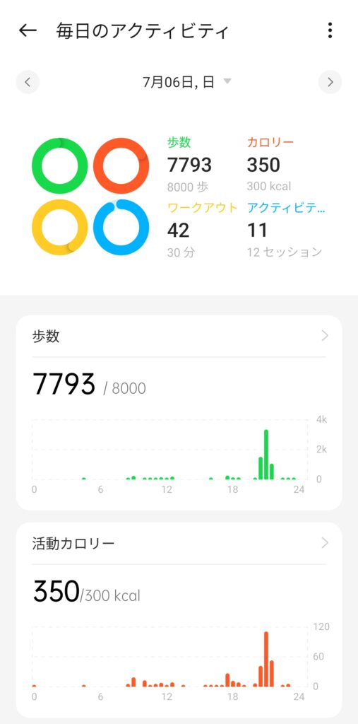 7月6日は全体歩数が8,000歩を下回ってしまいました😅