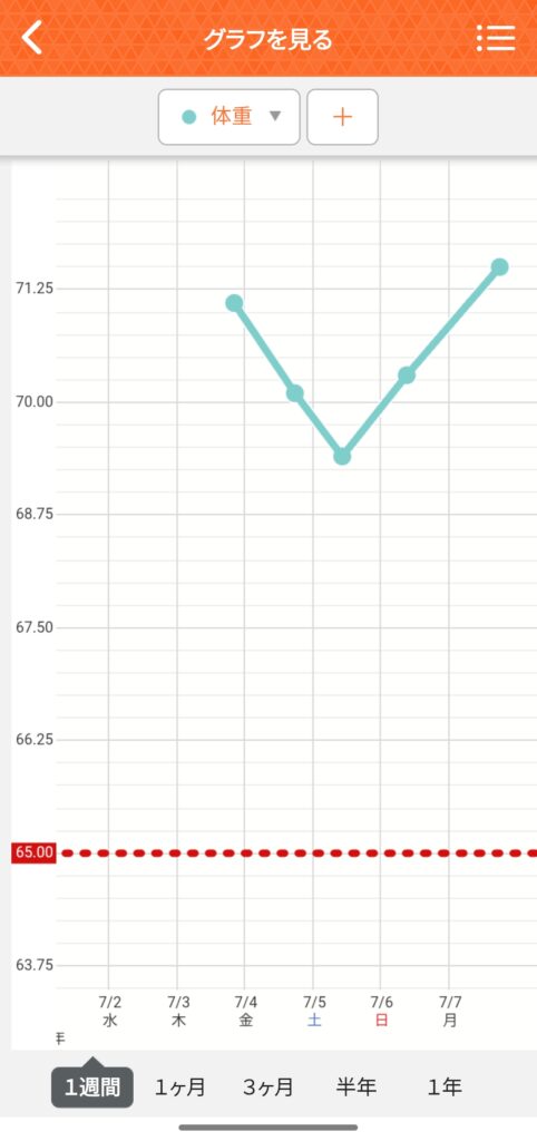 7月7日現在の体重はこんな感じです。