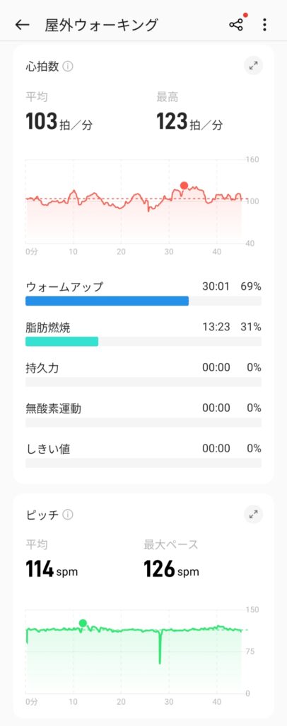日中歩数は8,513歩で、距離に換算すると6.8㎞程度です。