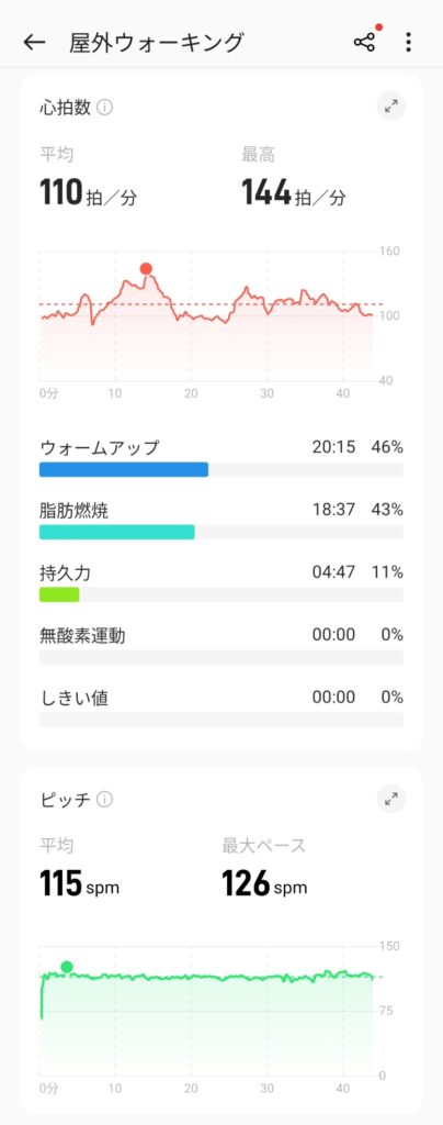 日中歩数は6,715歩で、距離に換算すると5.3㎞程度です。