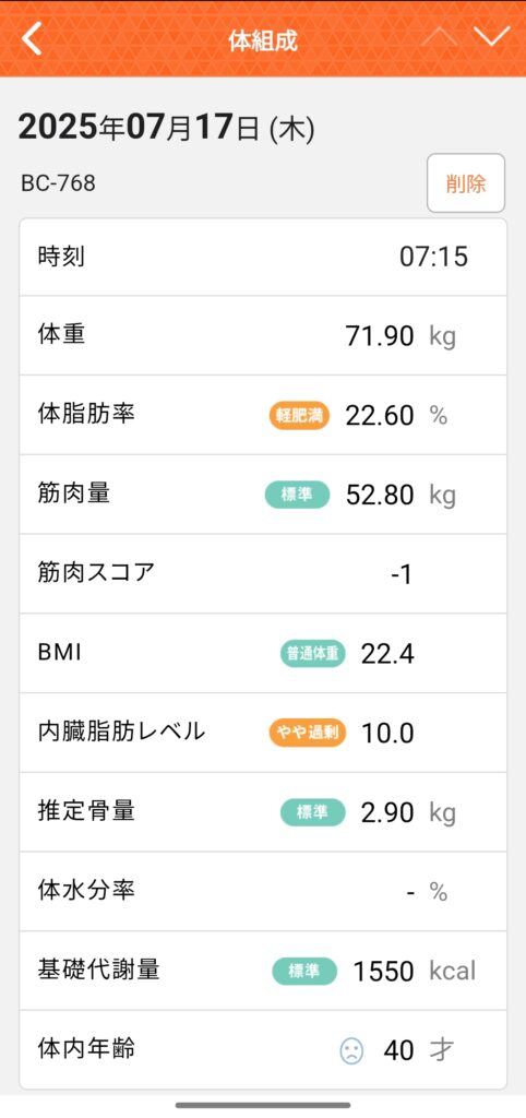 体脂肪率が軽肥満となり、内臓脂肪がやや過剰となりました😢