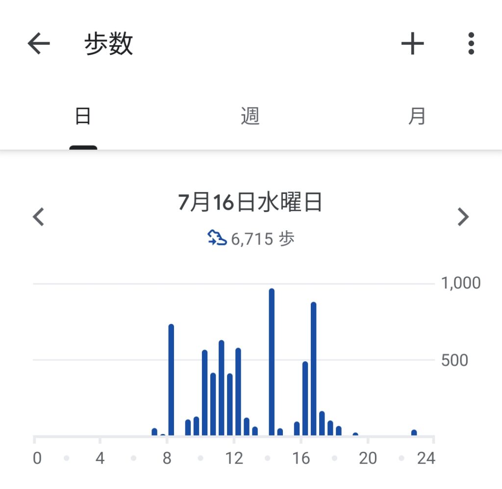 7月16日の歩数は合計で約1万2千歩で、距離換算で約10㎞歩きました👍