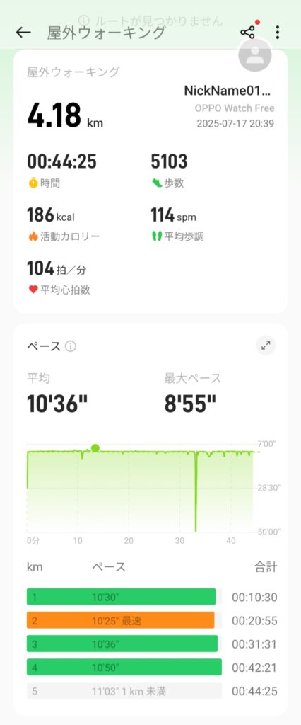 夜のウォーキング記録