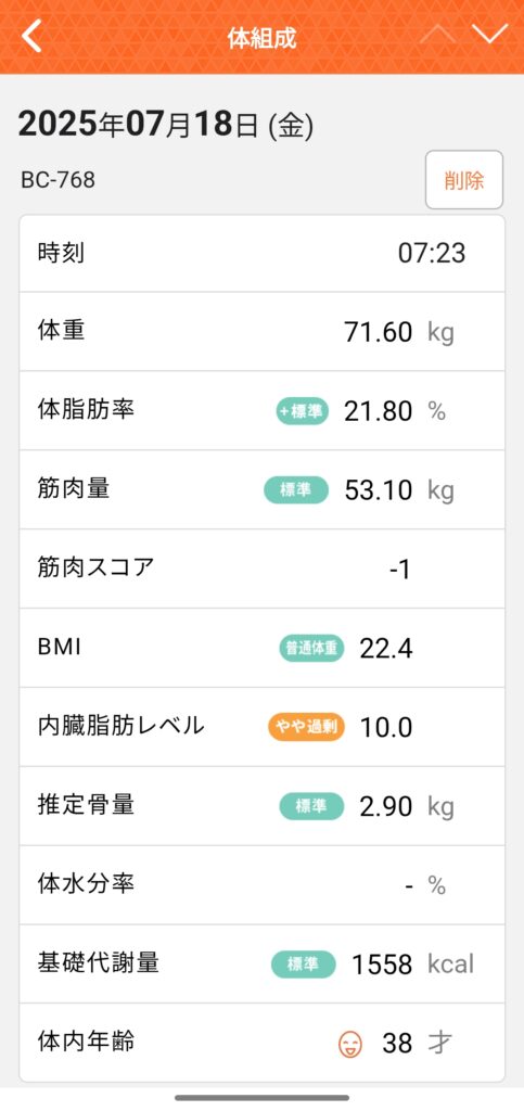 7月18日現在の体重はこんな感じです。