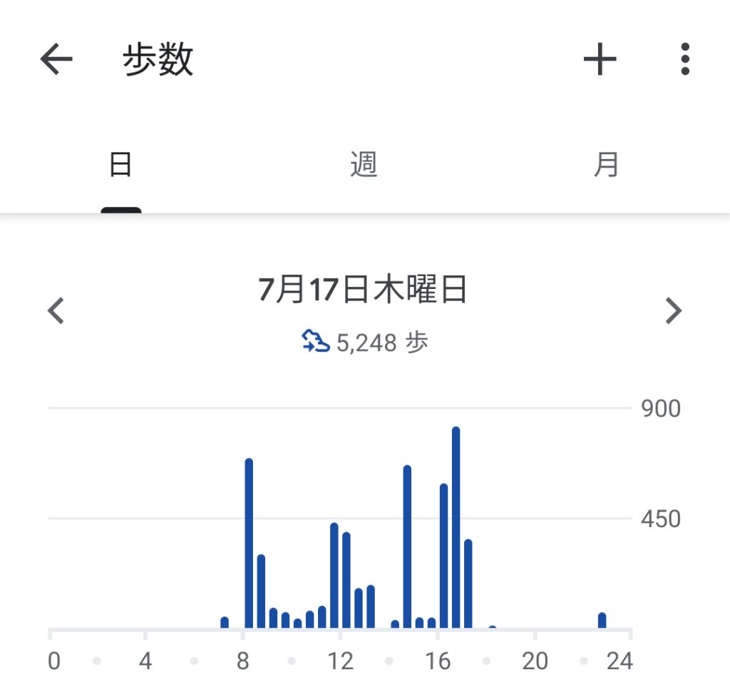 7月17日の歩数は合計で約1万5百歩で、距離換算で約8.5㎞歩きました👍