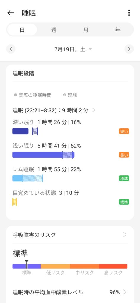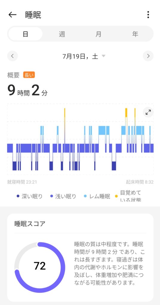 7月19日の睡眠スコアは72と中程度の睡眠の質でした😢