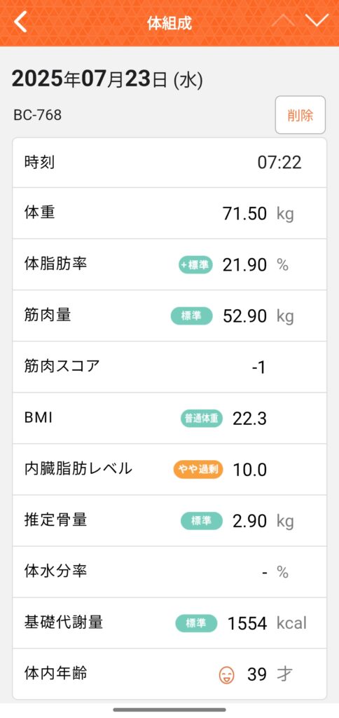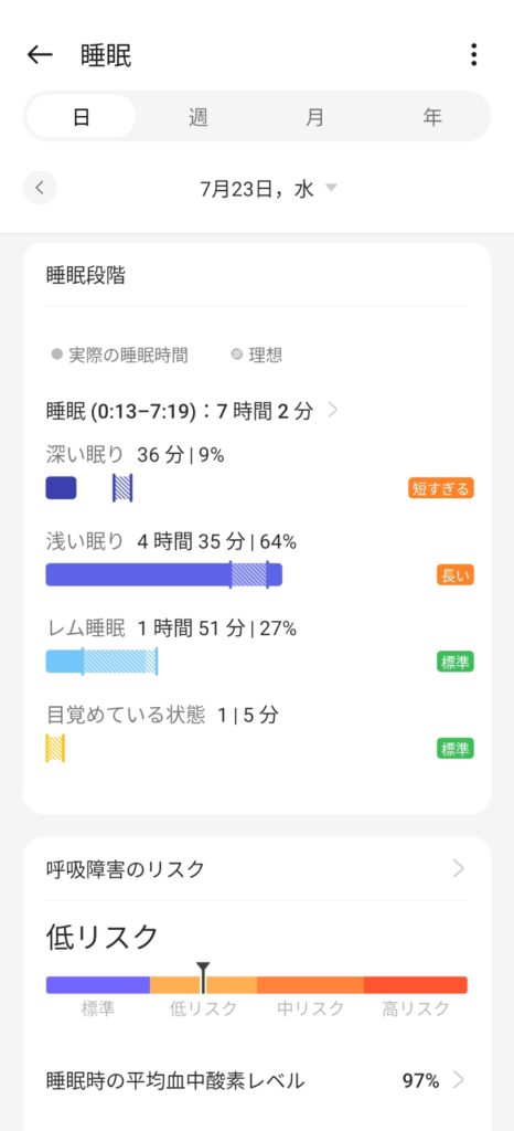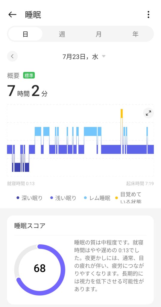 7月23日の睡眠スコアは68と中程度の睡眠の質でした😢
