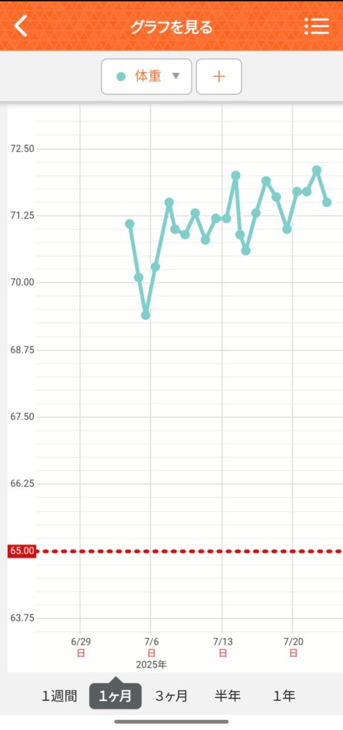身長179㎝のアラフォー男が今年の12月までに体重を70㎏→65㎏まで減らすために健康管理に取り組んでいます!