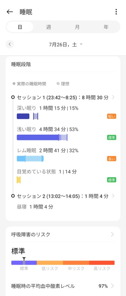 深い眠りが極端に低いですね。ですので、少し昼寝しました😑