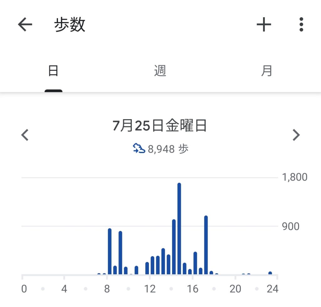 7月24日の歩数は合計で約1万4千歩で、距離換算で約7㎞歩きました👍