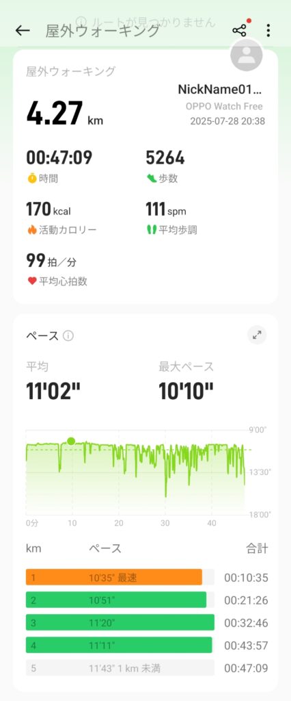 最近は少しゆっくり歩いており、歩行時間はいつもより少し遅めの47分でした😺