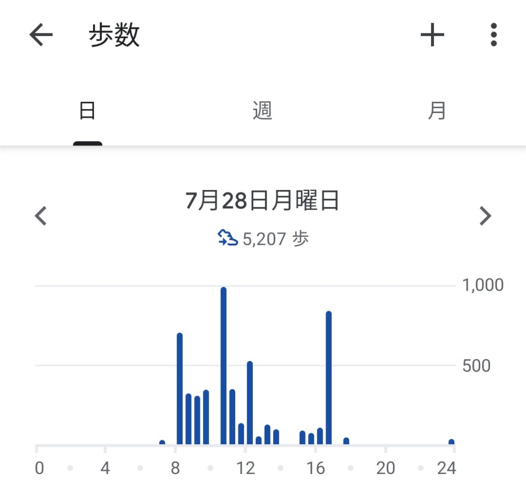 7月28日の歩数は合計で約1万歩で、距離換算で約8㎞歩きました👍