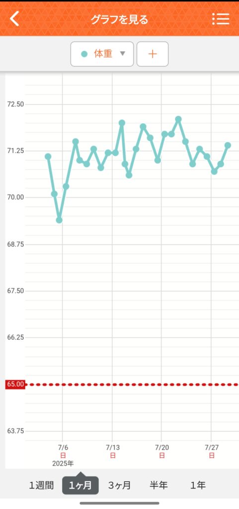 身長179㎝のアラフォー男が今年の12月までに体重を70㎏→65㎏まで減らすために健康管理に取り組んでいます!