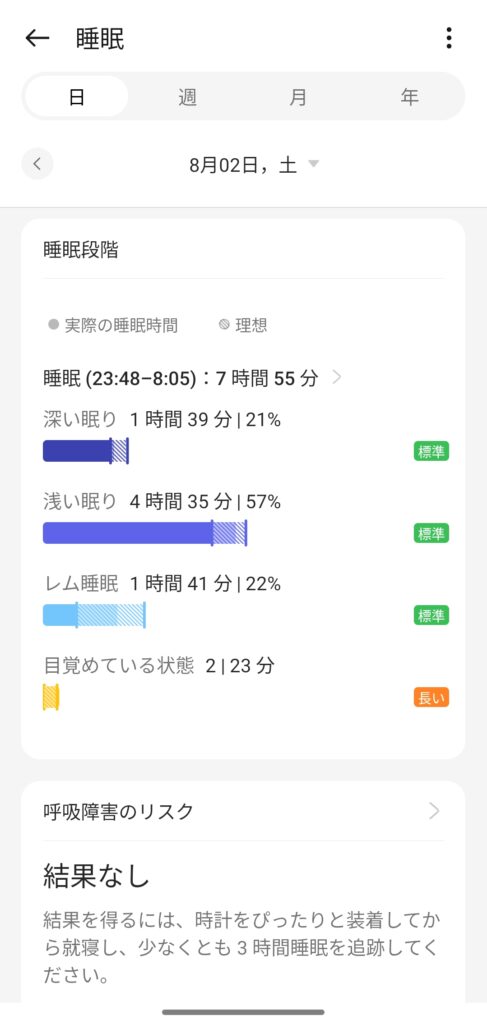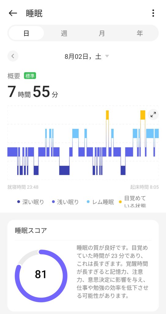8月2日の睡眠スコアは81と睡眠の質は良好でした👍