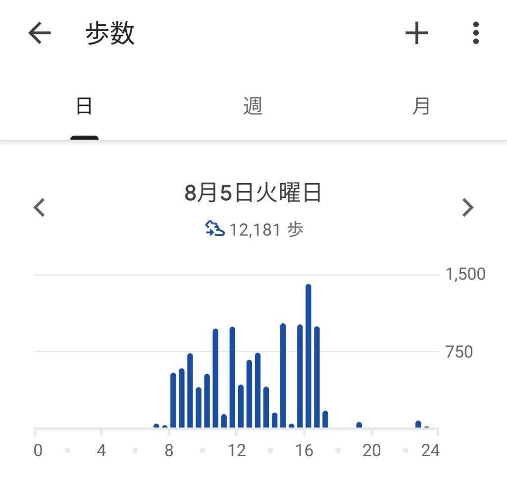8月5日の歩数は合計で約1万7千歩で、距離換算で約14㎞歩きました👍