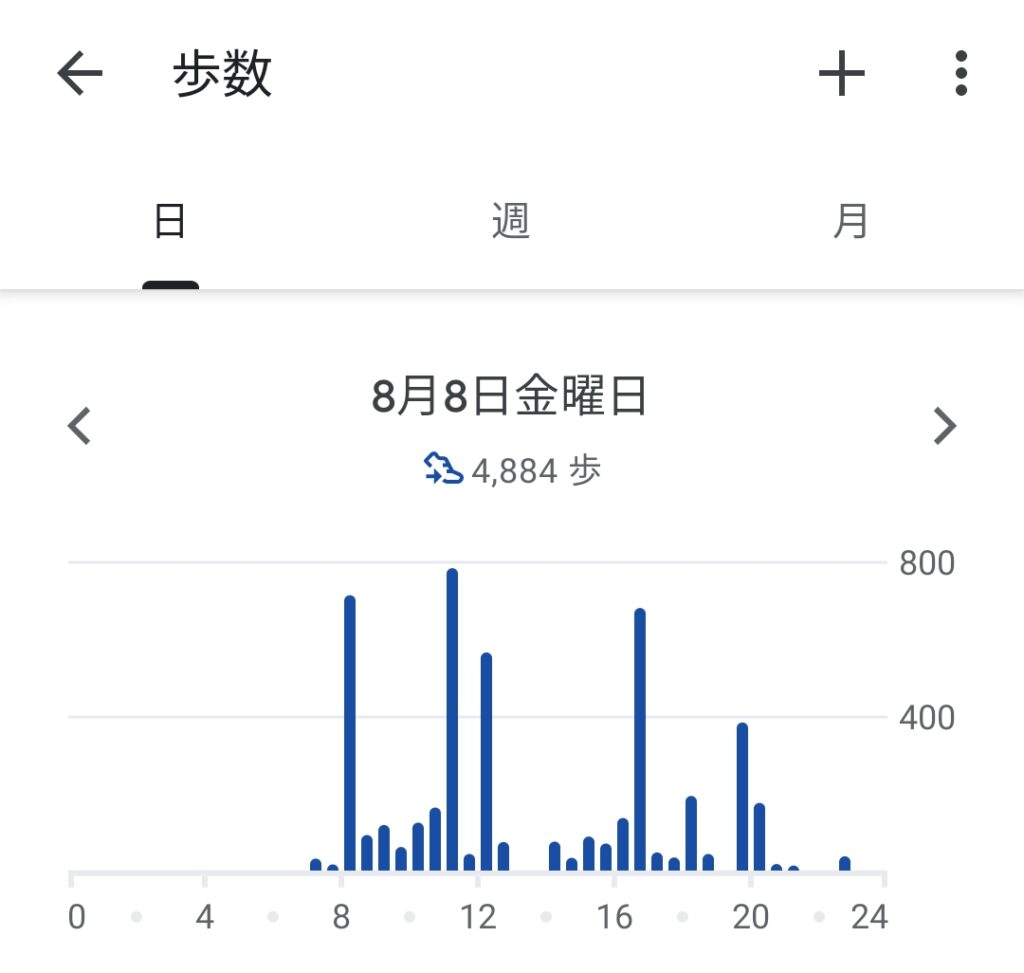 8月8日の歩数は合計で約1万歩で、距離換算で約8㎞歩きました👍