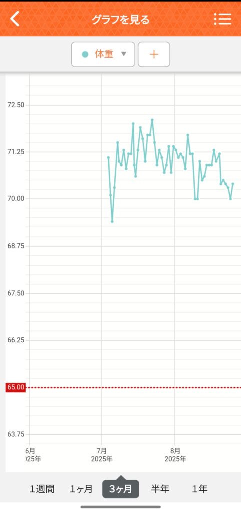70㎏なると必ず増えるのですが。。。あの体重計に嫌われているのか?
