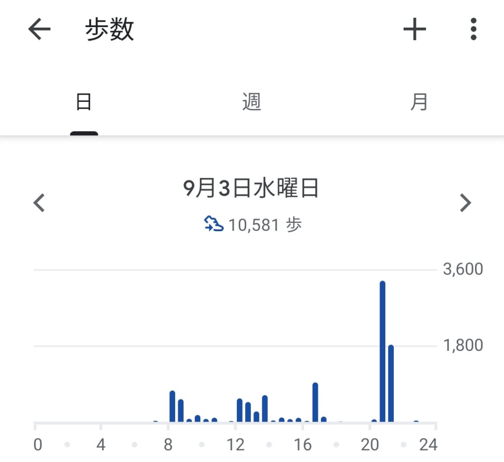 Google Fitで計測した日中(仕事中)と夜間ウォーキングの合計歩数です。