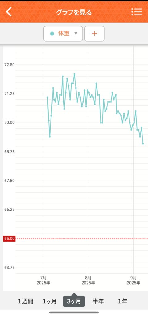 68㎏が見えてきました。腹八分効果は大きいですね。