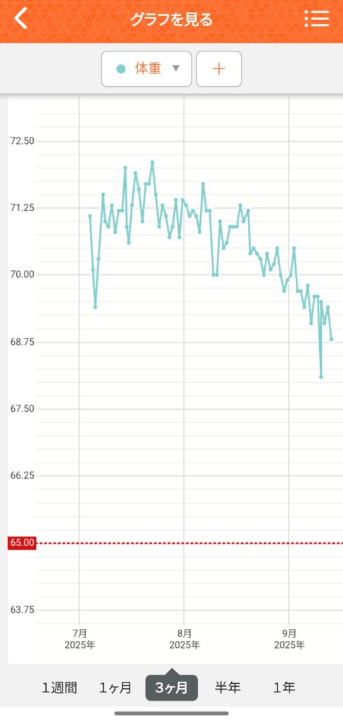 ただ、体重は順調に減っています!このままのペースでいけば65㎏まで減るかもしれませんね👍