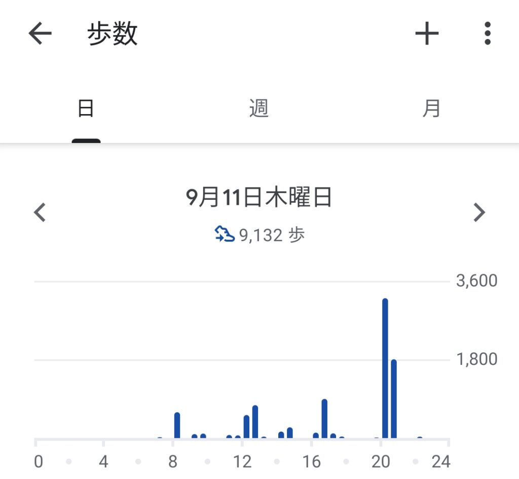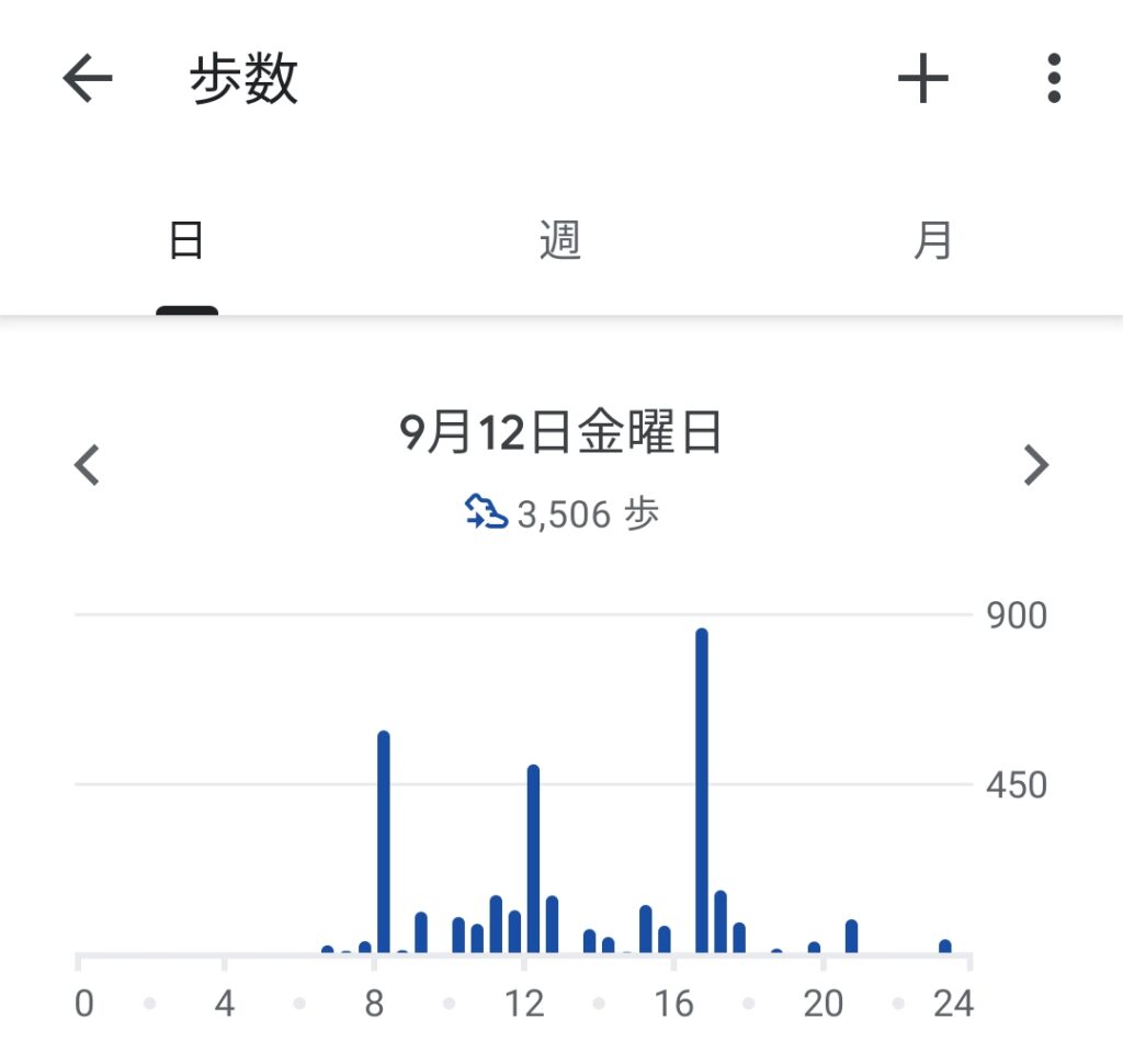 9月12日は1日の歩数が約三千五百歩でした😑