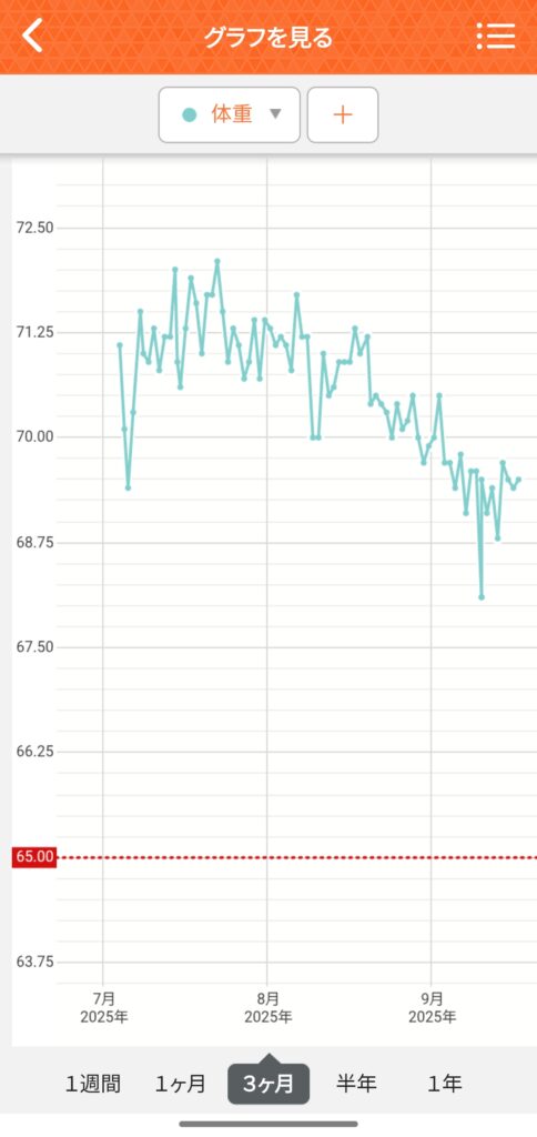 身長179㎝のアラフォー男が今年の12月までに体重を70㎏→65㎏まで減らすために健康管理に取り組んでいます!