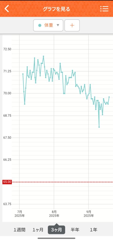 身長179㎝のアラフォー男が今年の12月までに体重を70㎏→65㎏まで減らすために健康管理に取り組んでいます!