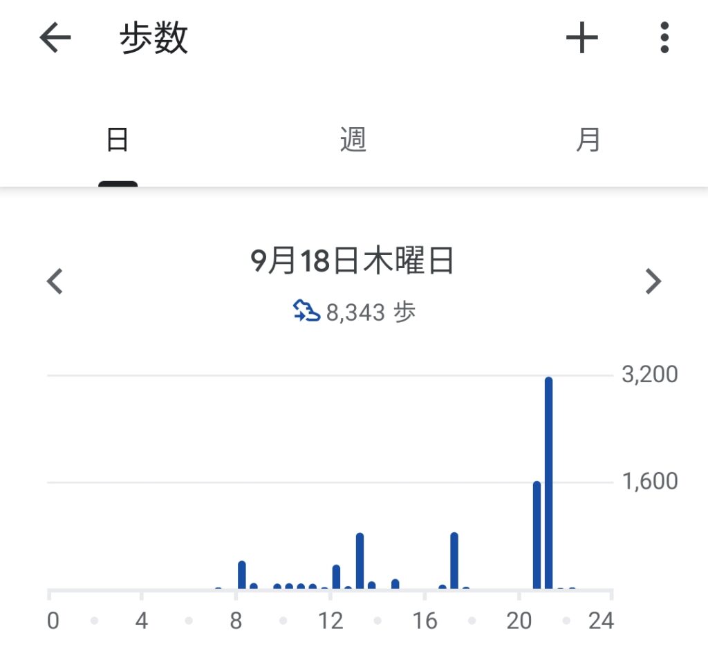 9月18日は1日の合計歩数が1万歩を超えることができませんでした(´;ω;`)