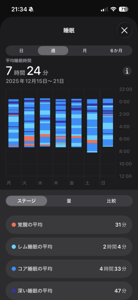 今週の睡眠の質は非常に良い状態を維持しています!先週と比べさらに改善しました!