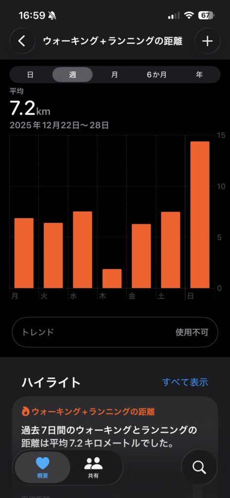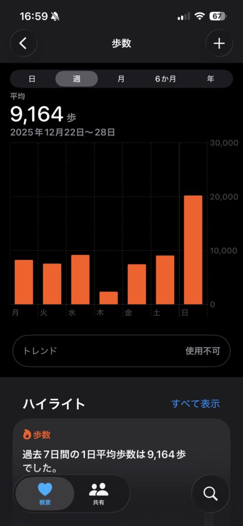 昨日12㎞歩いたこともあり、平均歩数が9千歩を超えています👌
