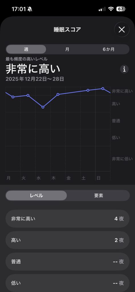 今週の睡眠の質は非常に高い状態を維持しています!金曜日は計り忘れです😓