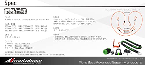モトベース(MOTO BASE)盗難防止用品 モトロックシリーズ コンパクト ループワイヤー(φ4.5) 長さ:600mm/ブラック|MBLC-STW-02-60BK